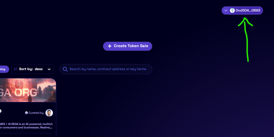* **Buy Section**: Here you can enter the amount of collateral token (e.g., ETH, USDT) you wish to use to purchase the sale token.
