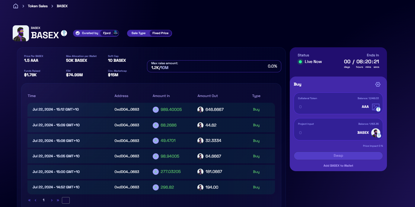 Fjord Foundry offers a straightforward and transparent way to participate in Fixed Price Sales. Fixed Price Sales on Fjord enable global projects to distribute tokens at a set price, fostering transparent and equitable partnerships. This approach democratizes access to early-stage opportunities for everyone!